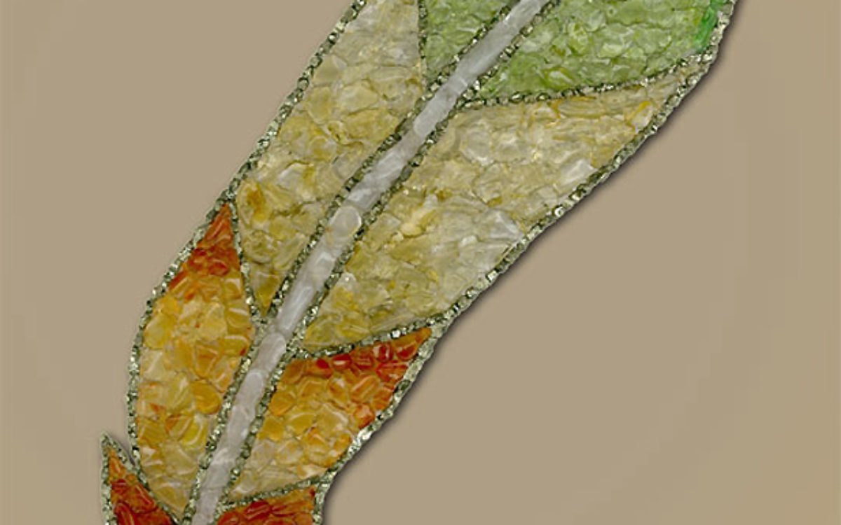 Maße: Höhe: 14 cm Breite: 9 cm Stärke: 6 mm Bildträger dieser Indianerfeder aus Edelsteinen ist Glas.Auf diesem Objekt befinden sich 1 468 Mineralien: 786 Pyrite aus Peru 235 geschliffene Citrine aus Brasilien 174 geschliffene Karneole aus Brasilien 124 geschliffene Tsavorite aus Tansania 92 geschliffene Peridote aus Brasilien 57 geschliffene Milchquarze aus Brasilien